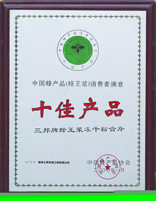 • 中國蜂產品消費者滿意十佳產品